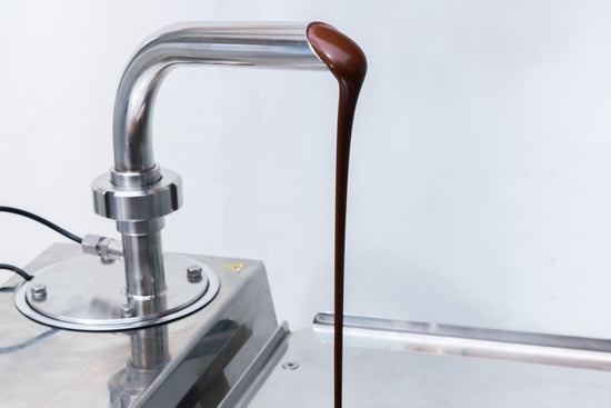After winnowing, the cocoa nibs are ground into cocoa mass by the grinding machine. Extra ingredients will be added in the process of conching, for example sugar or milk powder, to make different flavors of chocolate.