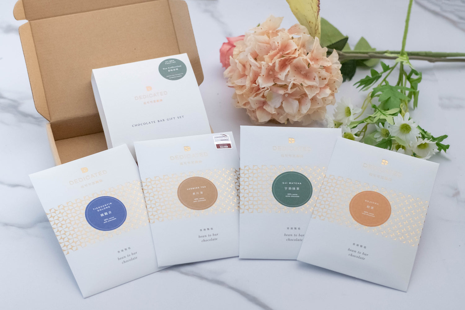 Tea flavour chocolate bars are always our best seller. Tea collection gift set include two famous Chinese tea - Jasmine and Tie Guan Yin Ooloog chocolate, and two famous Japanese tea - Hojicha and Uji Matcha chocolate.