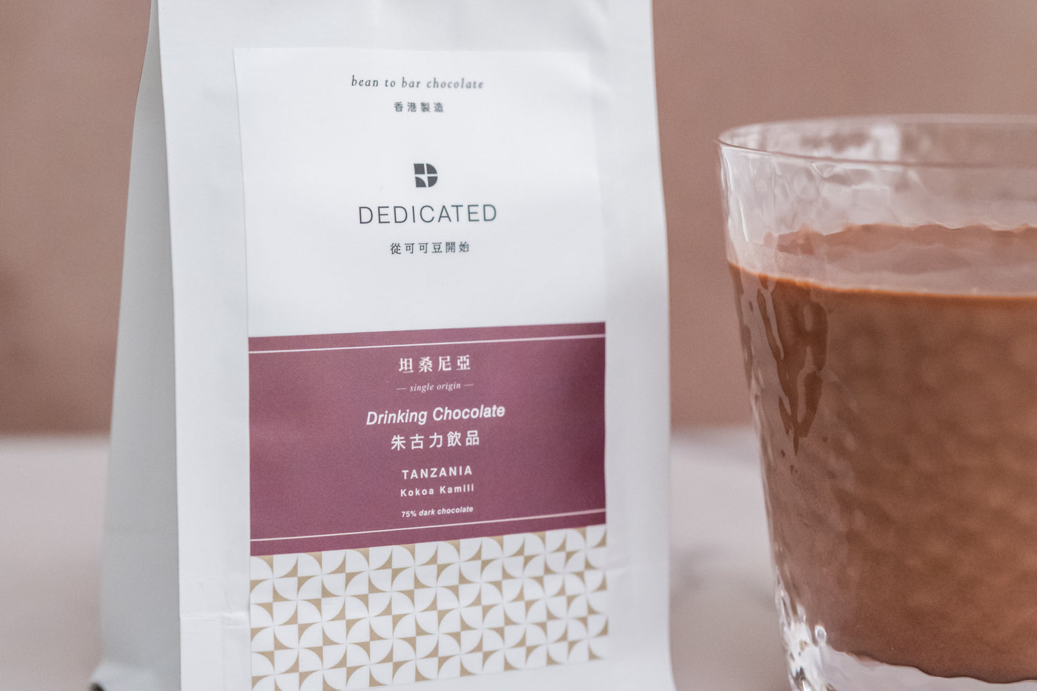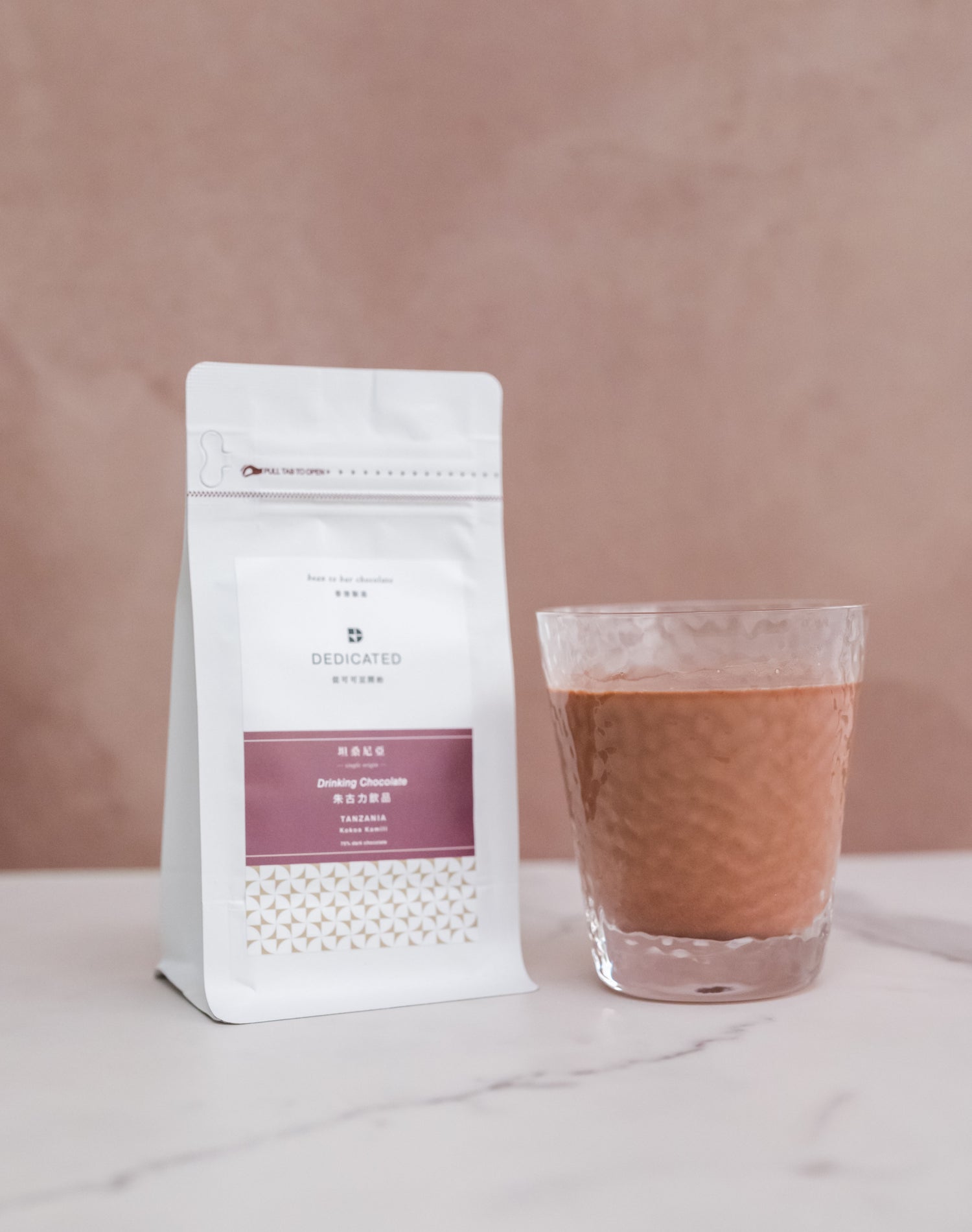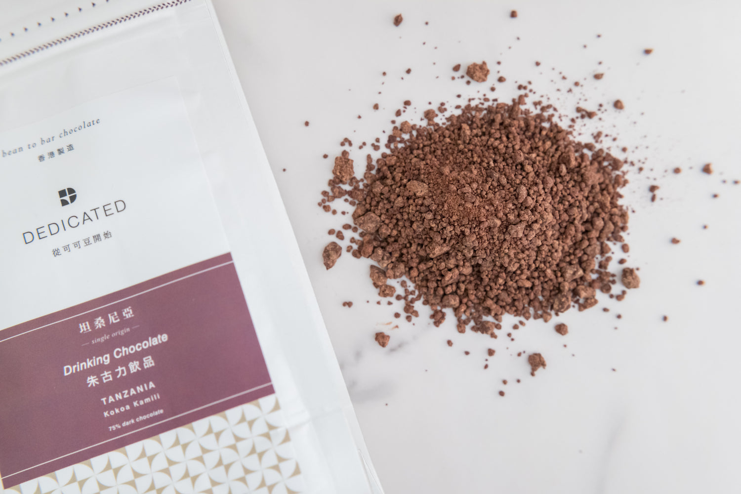 Ground 75% single origin Tanzania dark chocolate powder for making chocolate drink.