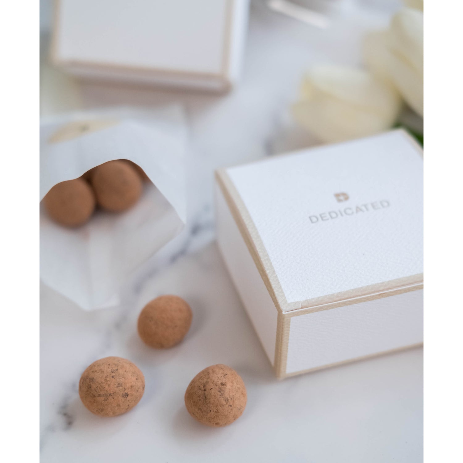 Our signature chocolate-covered caramelized hazelnut in elegant boxes are suitable for corporate Gift, farewell gift, wedding gift for any other occasions.