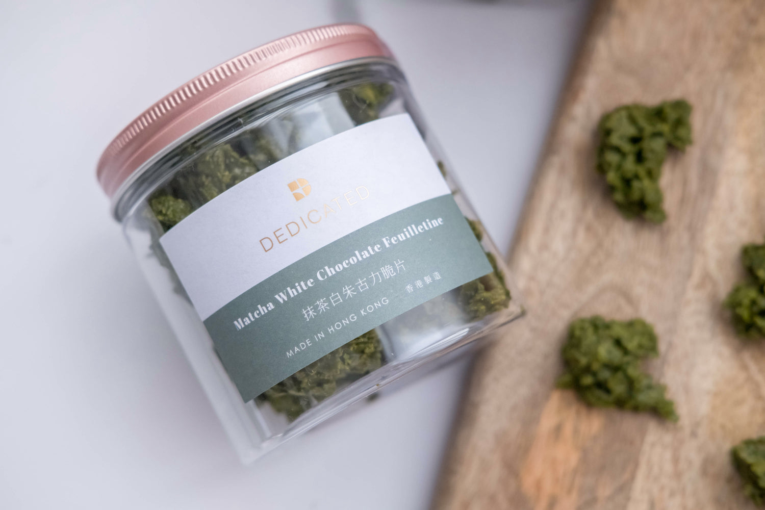 French feuilletine is a delicious and crispy wafer that break into small pieces, then mixed with our signature handmade 45% Uji Matcha White Chocolate.