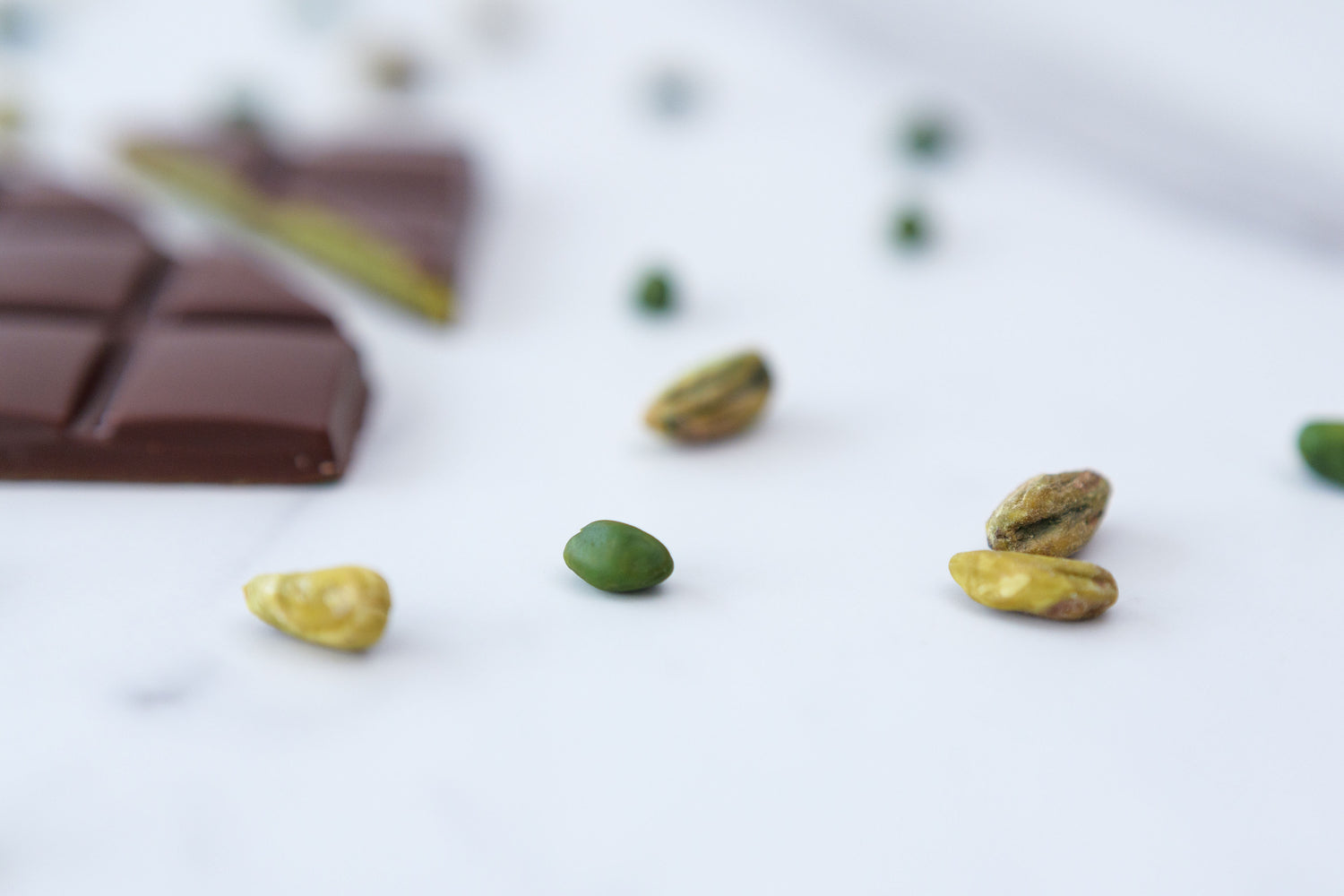 Milk chocolate filled with home grind pistachio paste, mixed with white chocolate and crushed pistachio.